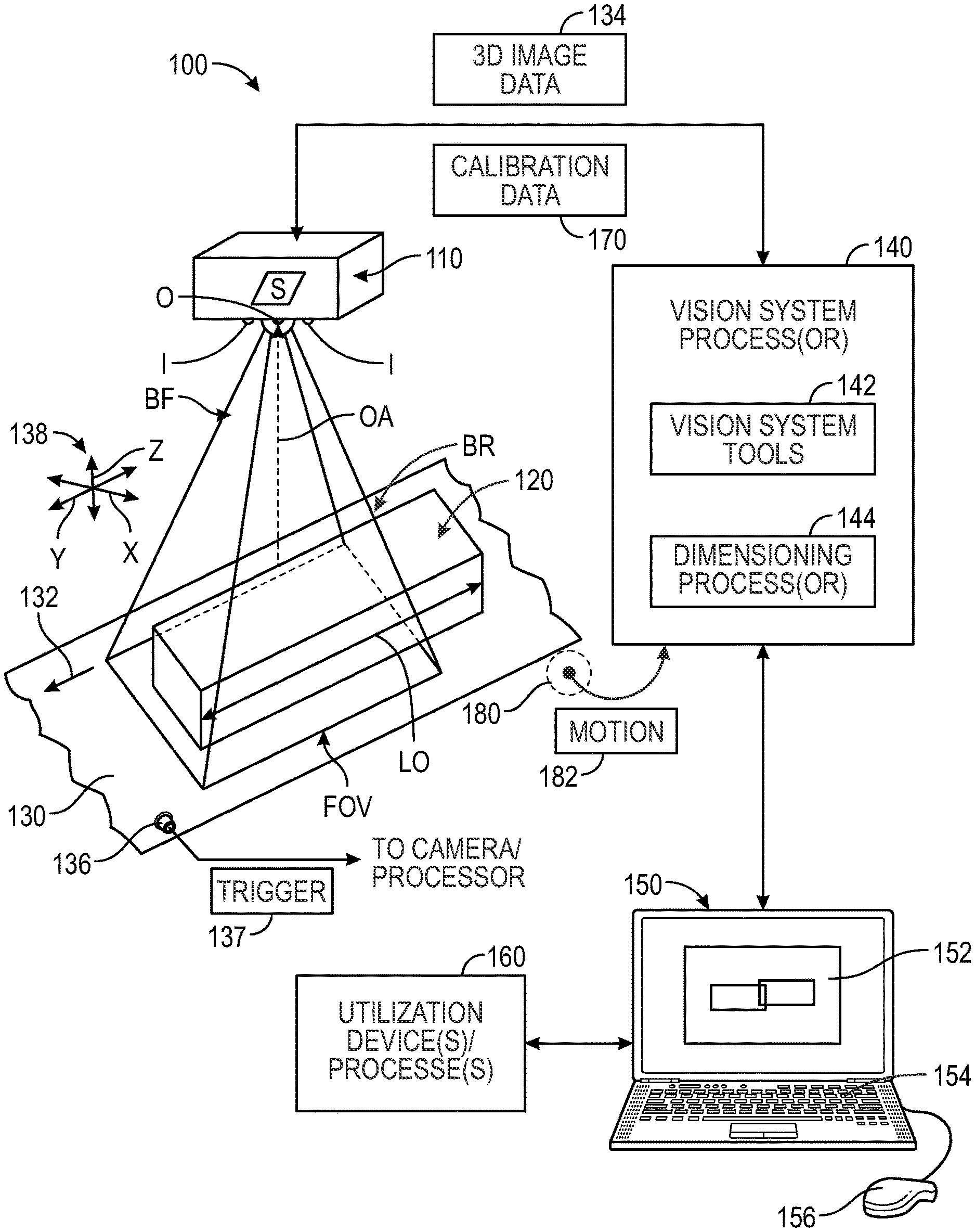 Many 3D cameras capture multiple partial views that need to be combined into a single coherent point cloud — a process called stitching. Most stitching approaches are computationally expensive and assume a capable host processor. These patents cover a system designed to scan objects on conveyors that exceed the camera's field of view, stitching partial 3D scans in real time on the camera's own embedded hardware. The goal was to keep stitching on-device so the camera could output a finished measurement rather than offloading raw data to a host for post-processing.
